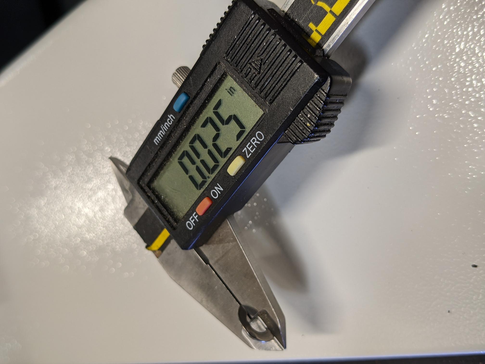 2. If only one of the corners have a significant gap measure the gap with a thickness gauge (as shown in Figure 2 below) or a piece of material to use as a shim or a washer to shim in further steps to compensate for the offset. If the table is relatively flat move onto Step 5.