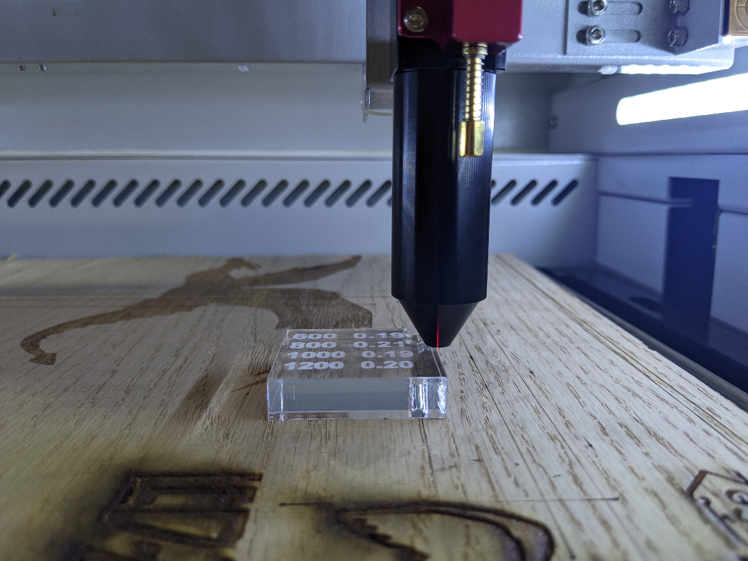 To focus with the longer nozzle you will lower your bed manually until the acrylic block (scanning offset block that came with your machine) just narrowly fits beneath the nozzle end as shown below.